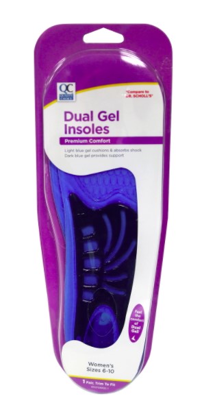 QC DUAL GEL INSOLES PREMIUM COMFORT (WOMENS SIZE 6 - 10, 1 Pair)